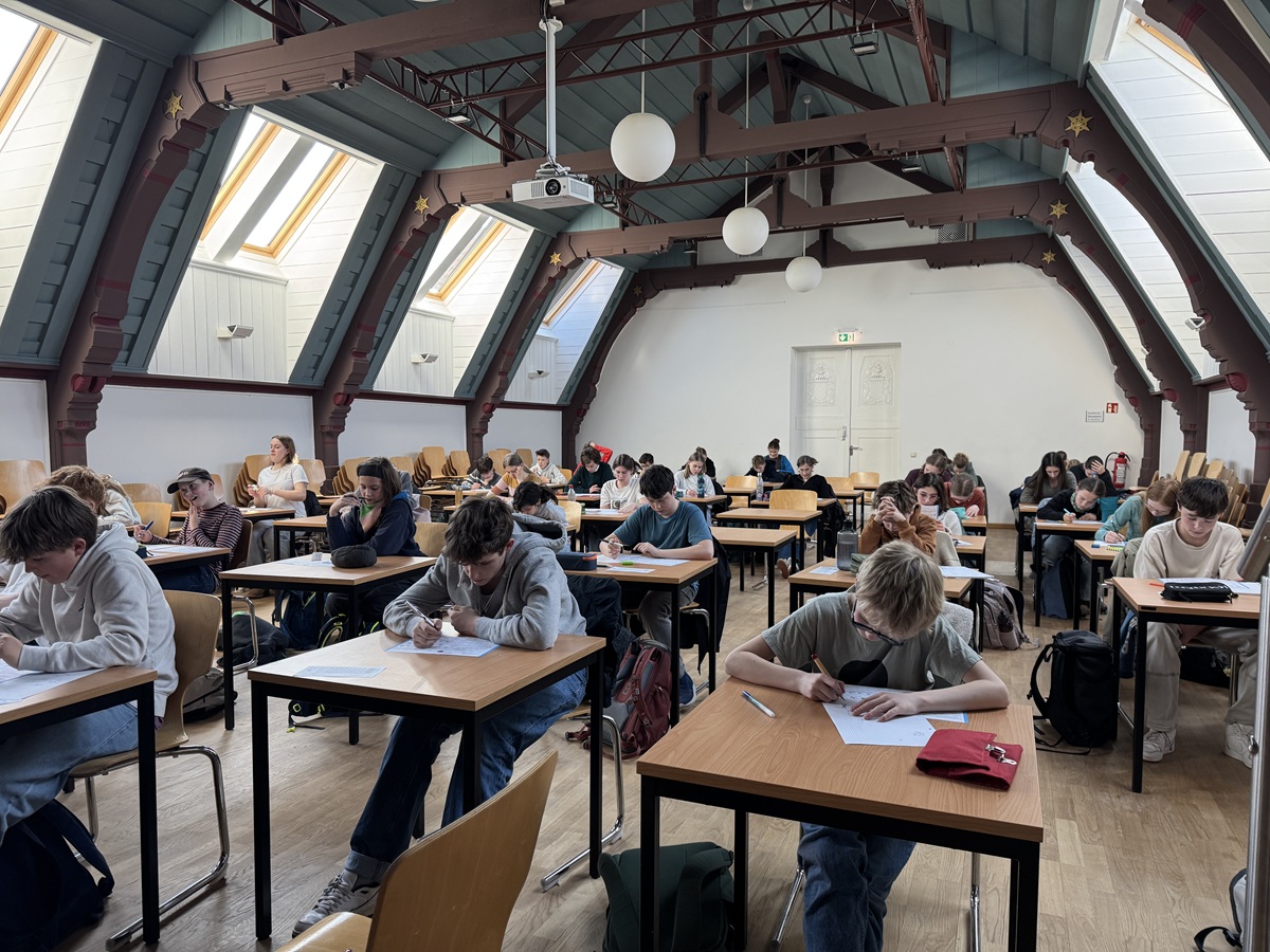 ein Wettbewerb, der in diesem Jahr am 19. März stattfand und wie immer gut besucht war. Es nahmen 120 Schülerinnen und Schüler aus allen Klassenstufen teil, deren Köpfe bei mathematischen Multiple-Choice-Aufgaben rauchten. Die Anstrengung wird mit einer Urkunde, einer Broschüre und einem Knobelspiel belohnt. Wer besonders gut war, erhält einen besonderen Preis. Wir drücken die Daumen.