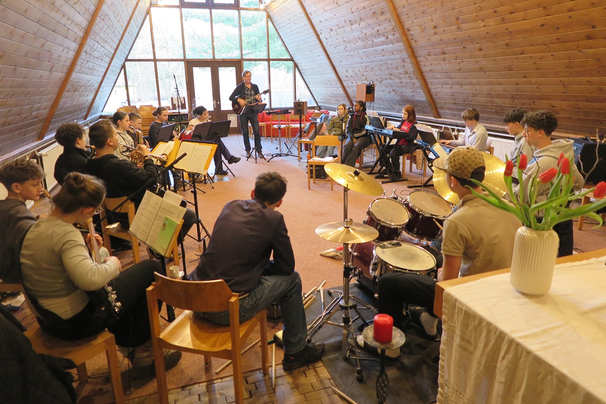 Was ist der Reiz an einer Fahrt, auf der man von früh bis spät konzentriert probt, wenig Freizeit hat und sein Handy abgeben muss? Warum gibt es Schülerinnen und Schülern, die nun schon zum 7. Mal dabei sind und andere, die sagen, es wäre die schönste Fahrt im Schuljahr? Warum waren wir in diesem Jahr so viele, dass wir sogar 4 Häuser bevölkerten und ganz Hirschluch für uns hatten?