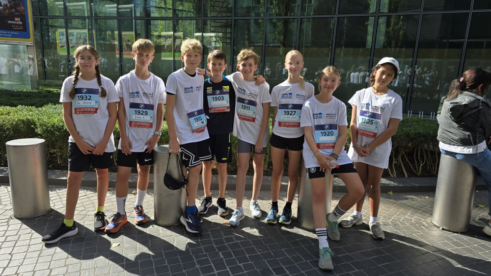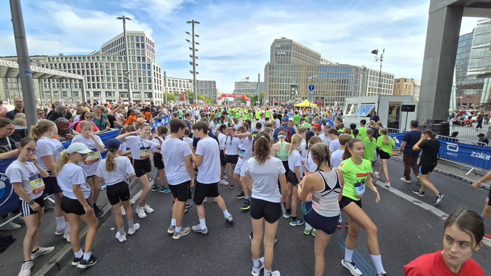 Es ist immer wieder ein großartiges Spektakel, wenn 10.000 Berliner Schülerinnen und Schüler am Potsdamer Platz zusammenkommen, um den Mini–Marathon in Berlin, den größten Schüler:innenlauf in Deutschland, zu laufen. In diesem Jahr waren es ca. 70 Schülerinnen und Schüler der Klassen 5 – 10 der Theresienschule, die hoch motiviert und bei strahlendem Sonnenschein und somit besten Laufbedingungen am Samstag um Punkt 12:00 Uhr an den Start gingen.