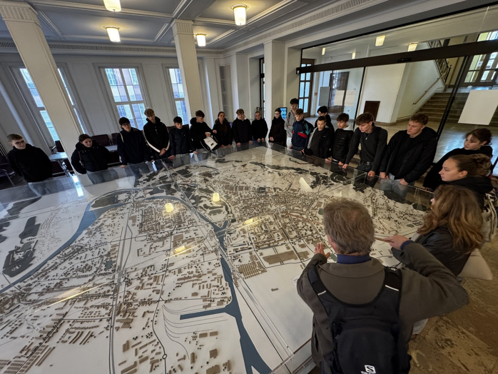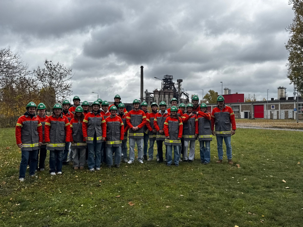 Dort wurden die 46 Schülerinnen und Schüler in zwei Gruppen aufgeteilt und wechselten nach zwei Stunden zwischen Besichtigung des Hüttenwerks und einem Stadtrundgang.