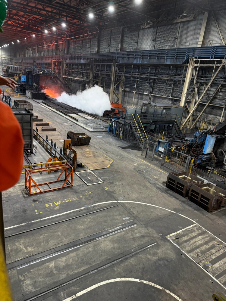 Es war für uns besonders beeindruckend zuzusehen, wie die 1.000 Grad heißen Stahlbrammen in der Warmwalzanlage zu einem langen Stahlband gewalzt und aufgerollt werden. Wir erfuhren außerdem von den beiden Mitarbeitern so allerhand über die wechselvolle Geschichte des Werks zu DDR-Zeiten, den Wendejahren und bis heute.