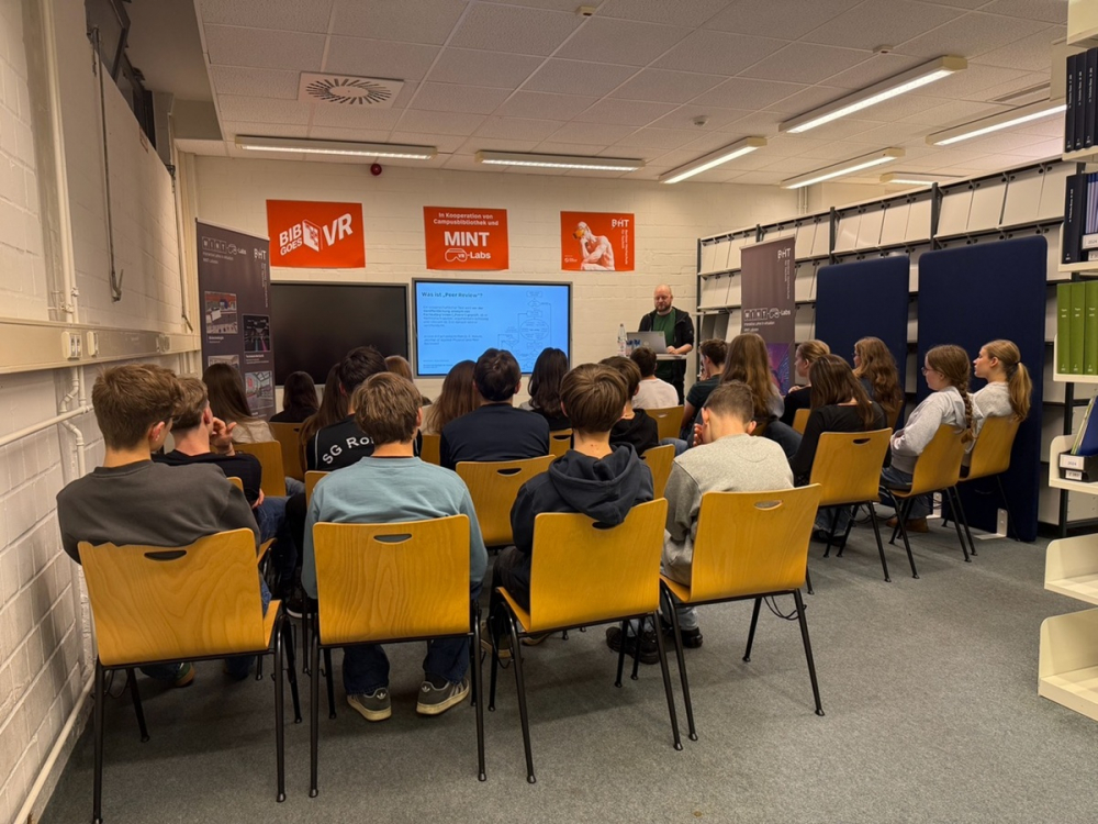 Die Klasse 10a besuchte am Montag die BHT Berlin und bekam eine sehr anschauliche und interessante Einführung in die wissenschaftliche Recherche. Dabei ging es nicht nur darum, warum ChatGPT keine ausreichende Recherche-Grundlage bietet, sondern auch um die Unzulänglichkeiten von Google. So konnte die Klasse den Sinn von Datenbanken und Katalogen gut nachvollziehen und Anregungen für die Recherche zur mPA mitnehmen - auch im Hinblick auf den sinnvollen Einsatz von KI!