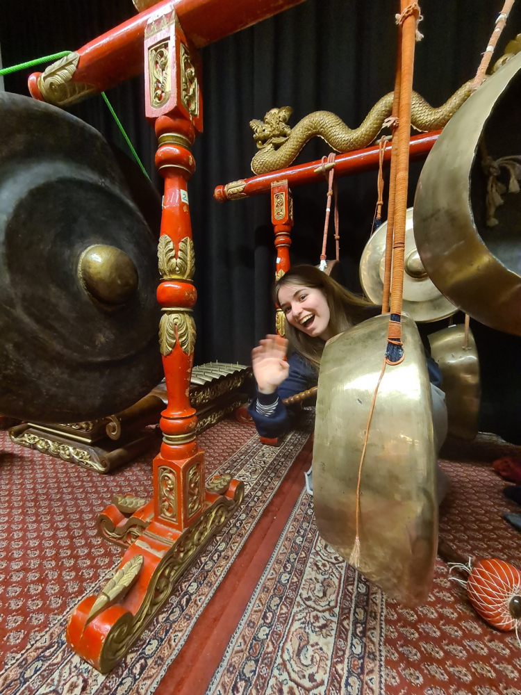 Am 21. und 28. Januar nahmen der Musik-LK von Frau Weickmann und der Musik-GK von Frau Schack an Workshops des Indonesischen Kulturinstituts in Tempelhof teil. Frau Sudarga wies uns geduldig in die Spielkunst des Gamelan-Instrumentariums ein, das für unsere europäisch ausgebildeten Ohren und Hände eine echte Herausforderung darstellt. Hier einmal ganz praktisch über den kulturellen Tellerrand zu schauen, war für alle Beteiligten ein großer Gewinn und machte das Semesterthema (Q4) „Musik verschiedener Kulturen“ auch sinnlich erfahrbar.