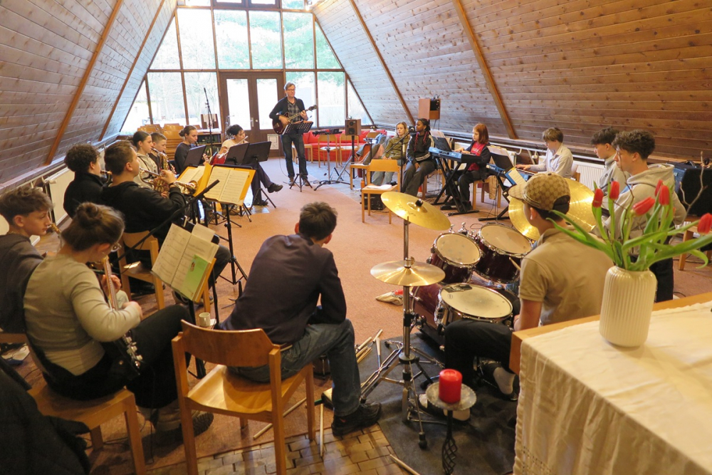 Vielleicht, weil wir alle so gerne Musik machen. Weil es nichts Schöneres gibt, als wenn sich schiefe Töne zu Wohlklängen formen und es anfängt zu grooven. Wenn man merkt, dass man zum Gesamtklang beiträgt und die Musik uns miteinander verbindet. Und weil die Musikfahrt auch immer eine Fahrt der gemeinsamen Spiele ist – vom Kennenlernen über "Capture the flag" im dunklen Wald, dem Mörderspiel bis zur Abschlussrallye mit Singen am Lagerfeuer – es gibt viele liebgewonnene Traditionen.