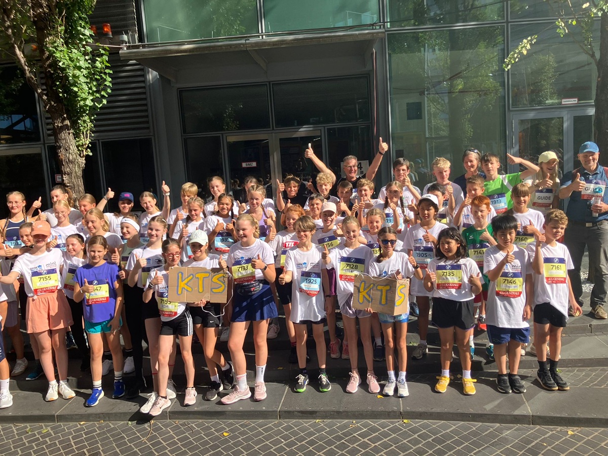 Es ist immer wieder ein großartiges Spektakel, wenn 10.000 Berliner Schülerinnen und Schüler am Potsdamer Platz zusammenkommen, um den Mini–Marathon in Berlin, den größten Schüler:innenlauf in Deutschland, zu laufen. In diesem Jahr waren es ca. 70 Schülerinnen und Schüler der Klassen 5 – 10 der Theresienschule, die hoch motiviert und bei strahlendem Sonnenschein und somit besten Laufbedingungen am Samstag um Punkt 12:00 Uhr an den Start gingen.